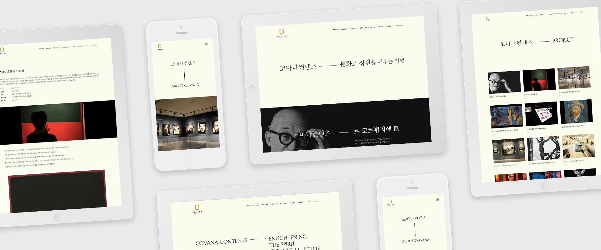 국내외 다양한 전시 및 공연을 유치하고 기획하는 문화컨텐츠 기업 코바나컨텐츠의 웹사이트를 리뉴얼 오픈하였습니다. 지금까지 성공적으로 수행해 왔던 전시/공연 프로젝트를 효율적으로 아카이빙함과 동시에 기획중인 프로젝트와 문화전반의 정보를 제공함으로써 국내 문화 컨텐츠를 가장 앞에서 이끌어가는 기업으로서 자리매김할 수 있도록 컨텐츠 관리자부터 사용자 UI/UX까지 웹사이트 전반을 개편하였습니다.